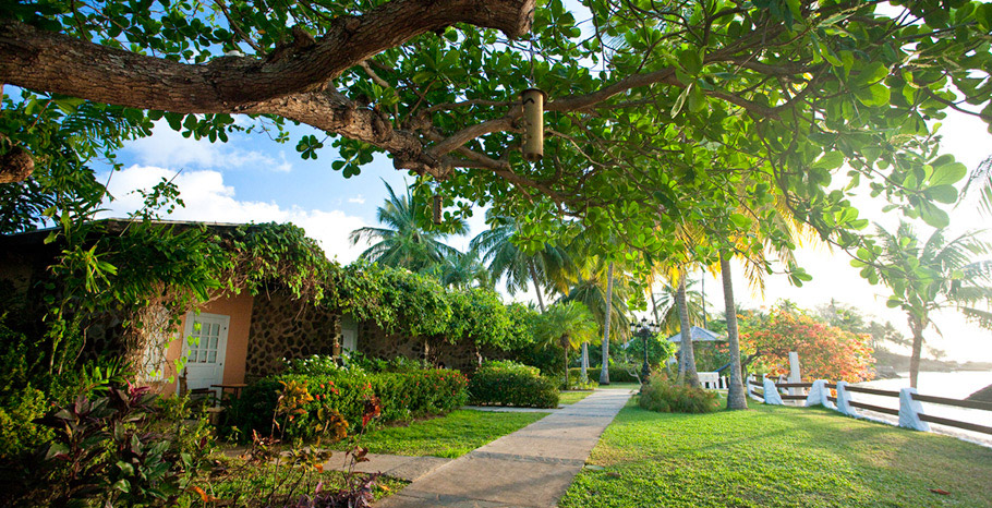 beautifully landscaped grounds and charming patio or stroll the nearby pathways lined with Almond, Breadfruit, and Coconut trees, winding